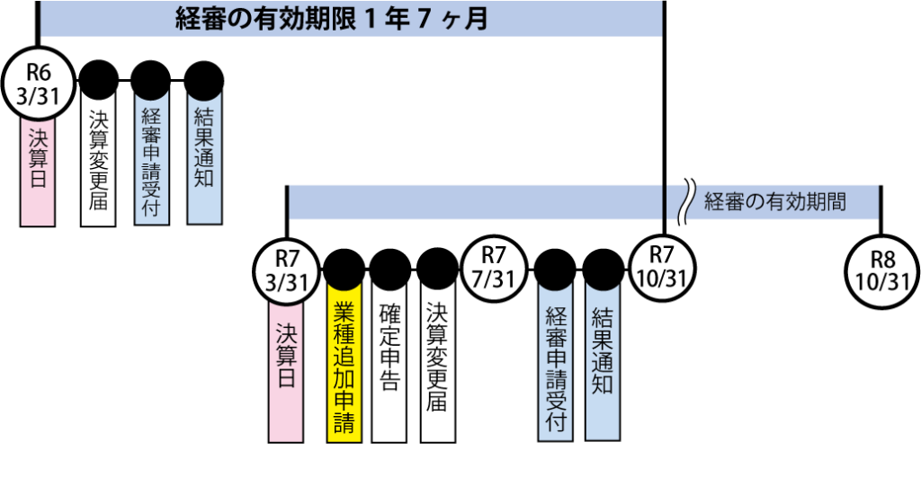 業種追加の提出時期(理想)R7年6月(実際)R7年8月