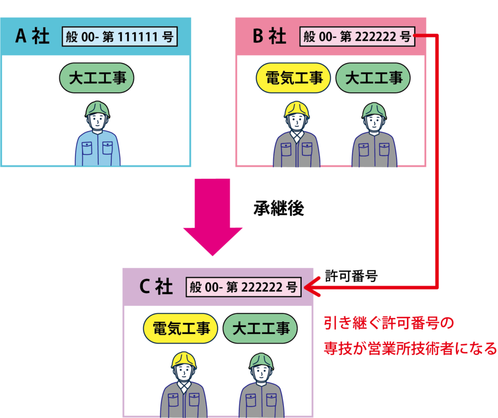 - 電気工事: B社の専任技術者が、承継後もそのままの体制で引き継がれます。
